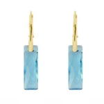 Silver 925 gold plated earrings with Swarovski Queen Baguette 25mm Aquamarine crystals
