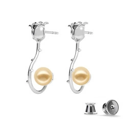 Sterling Silver Earrings 925 Roses with Swarovski Pearls 8mm Platinium