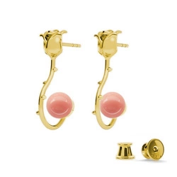 Silver 925 gold plated rose earrings with Swarovski pearls 8mm Pink Coral