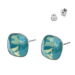 925 Silver Earrings with Swarovski Square 10mm Pacific Opal Crystals