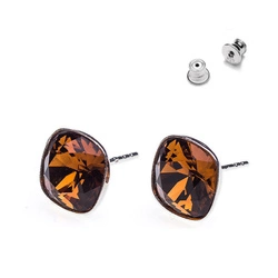 925 Silver Earrings with Swarovski Square 10mm Smoked Topaz Crystals