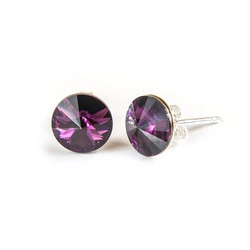 925 Silver Earrings with Swarovski Rivoli 8mm Violet Crystals