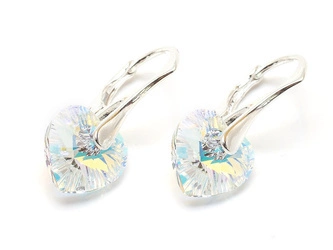 Silver 925 Earrings with Swarovski Crystals Hearts 10mm Crystal AB