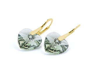 Gold plated 925 silver earrings with Swarovski crystals Hearts 14mm Silver Shade