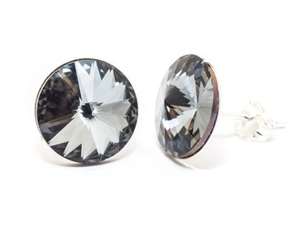 Silver 925 Earrings with Swarovski Rivoli 12mm Silver Night Crystals
