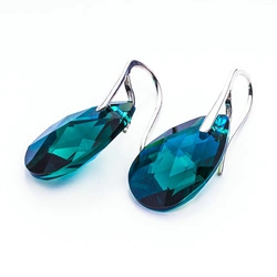 Silver 925 earrings with Swarovski crystals Almond 22mm Emerald AB