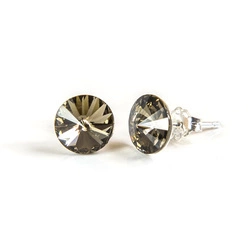 925 Silver Earrings with Swarovski Rivoli 8mm Greige Crystals