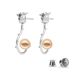 Silver 925 rose earrings with Swarovski 8mm Peach pearls