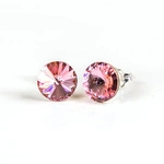 925 Silver Earrings with Swarovski Rivoli 8mm Light Rose Crystals