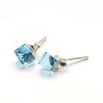 Sterling silver 925 Earrings with Swarovski Cube 4mm Bermuda Blue crystals