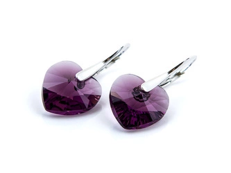 Silver 925 Earrings with Swarovski Crystals Hearts 14mm Provence Lavender