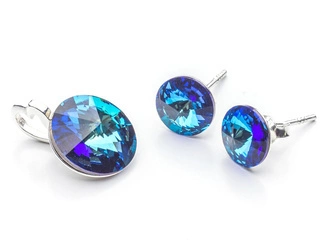 925 silver set of earrings + pendant with Swarovski Rivoli 8/12mm Blue Shade crystals