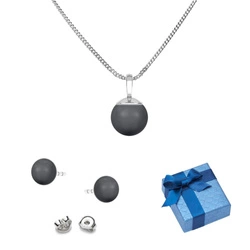 Silver set 925 earrings + pendant with Swarovski Pearls 8/10mm Dark Grey + armadillo chain pd40 45cm