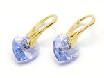 Gold plated sterling silver 925 earrings with Swarovski hearts 10mm Sapphire AB crystals