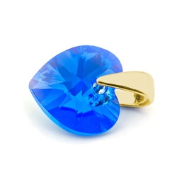 Sterling silver 925 gold plated pendant with Swarovski crystals Heart 14mm Bermuda Blue