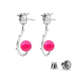 Silver 925 rose earrings with Swarovski pearls 8mm Neon Pink
