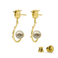 Silver 925 gold plated rose earrings with Swarovski pearls 8mm Rosaline