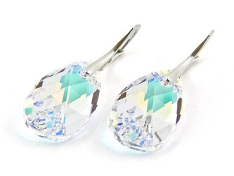 Silver 925 Earrings with Swarovski Crystals Almonds 22mm Crystal AB