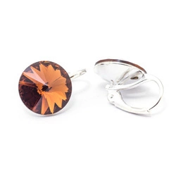 Srebrne 925 kolczyki z kryształami Swarovski Rivoli 12mm Smoked Topaz