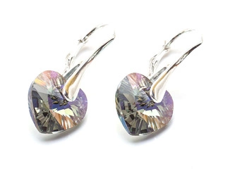 Srebrne Kolczyki 925 z kryształami Swarovski Serca 10mm Black Diamond AB