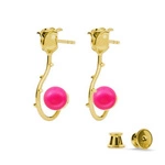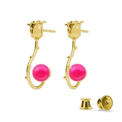 Srebrne 925 pozłacane kolczyki róże różyczki z perłami Swarovski 8mm Neon Pink