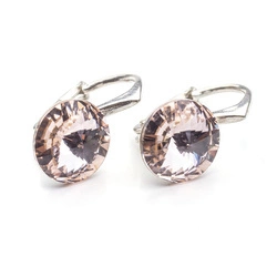 Srebrne 925 kolczyki z kryształami Swarovski Rivoli 12mm Light Rose