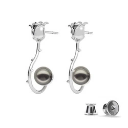 Srebrne 925 pozłacane kolczyki róże różyczki z perłami Swarovski 8mm Black
