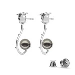 Srebrne Kolczyki 925 róże różyczki z perłami Swarovski 8mm Dark Grey