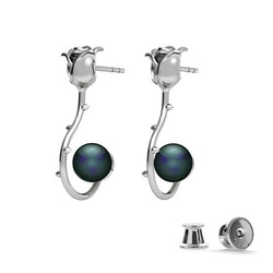 Srebrne 925 pozłacane kolczyki róże różyczki z perłami Swarovski 8mm Black