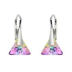 Srebrne Kolczyki 925 Swarovski Triangle 12mm Vitrail Light