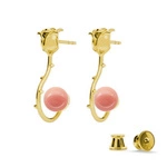 Srebrne 925 pozłacane kolczyki róże różyczki z perłami Swarovski 8mm Pink Coral
