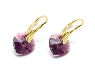Kolczyki pozłacane srebro 925 z kryształami Swarovski Serca 10mm Light Amethyst