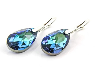 Srebrne 925 kolczyki z kryształami Swarovski Migdały 22mm Bermuda Blue