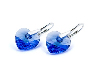 Srebrne Kolczyki 925 z Kryształami Swarovski Serca 14mm Sapphire
