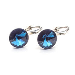 Srebrne 925 kolczyki z kryształami Swarovski Rivoli 12mm Blue Shade