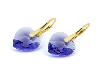 Kolczyki pozłacane srebro 925 z kryształami Swarovski Serca 10mm Tanzanite