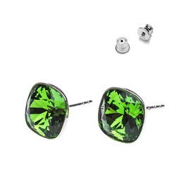 Srebrne Kolczyki 925 z kryształami Swarovski Square 10mm Fern Green